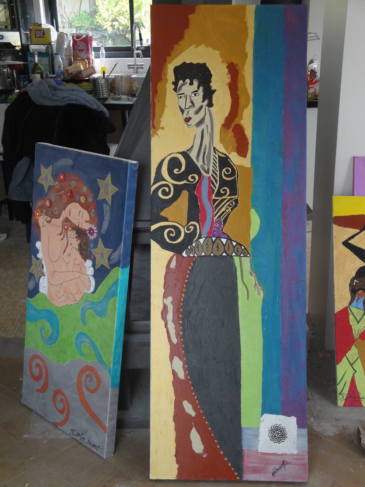 Elle peint aussi bien des oeuvres figuratives qu'abstraites.